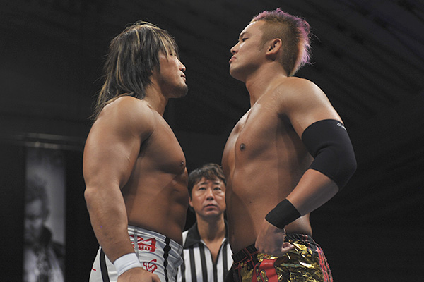 オカダ(当時・岡田かずちか)は2010年1月31日に棚橋を相手に壮行試合を行い、アメリカに海外修行に出発。先述のとおり、2012年の1.4東京ドームで凱旋帰国を果たすと、翌月の2.12大阪府立体育会館で棚橋のIWGPヘビーに挑戦。
