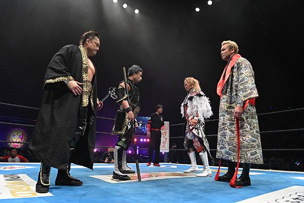 ここからオカダの「というわけで、あとは外道さんにしゃべってもらいます」という懐かしさを感じさせるフレーズを受け、外道が「レインメーカーが来たかぎりは、史上最高の引退試合になるぞ。なんでかわかるか? レエェェベルが違うんだよ、コノヤロー!『WRESTLE KINGDOM 20』東京ドームに、カネの雨が降るぞォォ!」と、貫禄たっぷりに往年のマイクアピール。