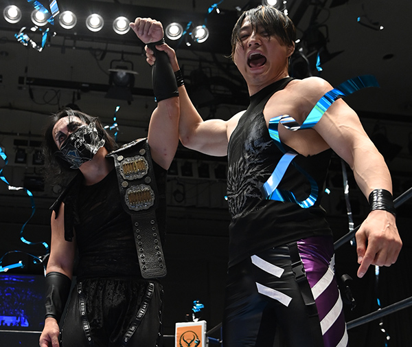 熾烈なライバル闘争を経て、2018年11月からは共闘する場面も見られた両雄。2023年の3.6大田区総合体育館では、二人で毘沙門(後藤洋央紀&YOSHI-HASHI)が当時保持していたIWGPタッグに挑戦を果たした。